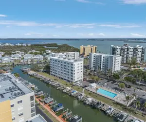 Welcome to Casa Marina #432 – your canal-front tropical hideaway in paradise. This resort-style condo on the 4th floor above ground floor level has 2 bedrooms and 2 baths. The building is located right next to the beautiful community pool. Views are of the surrounding network of canals, boat docks, and all the lush tropical foliage, as well as the Gulf of Mexico. This resort is located at the quiet southern end of Estero Island and offers amenities that include deeded beach access, a heated pool with cabana just steps from your building, and fishing piers. The community's grounds are beautifully landscaped and maintained. There is ample parking, and a convenient trash chute next to the elevator. In addition, within walking distance is a public marina and a CVS pharmacy. There is also quick exit via the south bridge to nearby Naples, Bonita Springs, Estero and RSW International Airport. The beach at this portion of the island is expansive, connecting its guests to 7 miles of white sugar sand beach. Trolley service is available from the boulevard out front to the Times Square area, the central hub of Fort Myers Beach, where there are many shops, restaurants and the new Margaritaville Resort. The trolley can also take you south to the secluded Lover's Key park. The island's major supermarket, Publix, is just a 2-mile drive away. Other amenities include central air conditioning, ceiling fans, complimentary WiFi, private laundry and all towels and linens are provided.