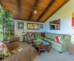 Whether you're sipping your morning coffee on the lanai, watching the sunset over the Pacific, or enjoying the cool breeze after a day at the beach, you'll feel right at home. The open-concept living space is perfect for relaxing or entertaining, and the well-equipped kitchen offers everything you need for dining in.