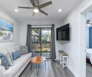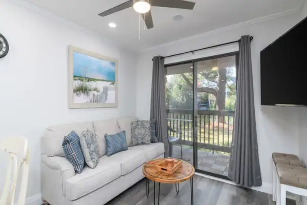 Welcome to BLUE LAGOON, a beautifully designed Vacation Ready Services condo located at Hilton Head Island Beach & Tennis Resort! Located on the 1st floor of Tennis Villa B, this 2 bed & 2 bath retreat is the perfect location for family and friends. The bedroom suite includes a relaxing queen bed, flat screen Smart TV, and chic decor with an en-suite bathroom. The guest bedroom is fit for 3 guests with a spacious bunk bed. Need room to squeeze in more guests? Take advantage of the sleeper sofa in the living room! The bathrooms are spacious and make it easy to wash off the sand from your day at the beach. The primary bathroom has a walk in shower and the guest bathroom has a tub & shower combo. The kitchen has all full sized appliances that include a dishwasher, fridge, stove/oven, and sink. The kitchen is open to a beautifully designed living room with another Smart TV as well as cable. Step out in the morning to the serene lagoon facing 1st floor balcony. You’ll love to have coffee in the morning and listen to the wildlife. While you are here, you'll have private WiFi and all the essentials to make your stay comfortable - including starter supplies such as dish soap/detergent, trash bags, laundry detergent, toilet paper, paper towels, and bathing towels for your convenience. We provide enough bathing towels for each guest during your stay. Please do not use these on the beach! If you find yourself running low on towels, please utilize the on-site laundry area. You will have to go to the convention center (the building to the left as you enter the resort) and purchase a money card for the laundry area. Each load of laundry will cost $3.00.