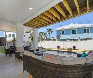 Welcome to 209 Seabreeze Escape, a stunning new 5-bedroom pool home located just across the street from the beautiful beaches of Fort Myers. This spacious retreat is perfect for families or groups, comfortably accommodating up to 12 guests with its thoughtfully designed layout, modern amenities, and prime location.