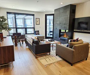 Five Needles 317 is a brand new beautifully furnished 2-bedroom 2-bathroom unit. Located at the White Pines, Five Needles sets a new standard for luxury at Schweitzer. Guests enter the unit in the open living space with kitchen and living room. The kitchen features high end appliances and plenty of counter space to cook a gourmet meal in the fully stocked kitchen. Cozy up around the electric fireplace or catch up on your favorite shows on the large flat screen TV. The living room also features a queen size sleeper sofa. Enjoy your meal and soak in the views of Schweitzer Village and Mountain at the dining room table with seating for 4. Off this space is a private balcony, another perfect place to soak in the views. The master bedroom features a king size bed, and ensuite bathroom with walk in shower. The second bedroom features a king bed, and a desk for workspace if needed. The second bathroom is located off the living space with a shower/tub combo and in unit washer and dryer. Unit has one assigned spot in a heated parking garage.The Five Needle’s is an addition to the White Pine Lodge, bringing a new level of luxury to Schweitzer. Completed in the summer of 2023, these units feature high end appliances and furnishings and amazing views. Available in studio, and two-bedroom condominiums, these units offer one underground parking space, ski storage, and access to the common area amenities at the white pine included hot tubs and a fitness facility. Schweitzer Property Management is the largest and most trusted property management company at Schweitzer. All guests with Schweitzer Property Management have access to the outdoor hot tubs and heated pool at the Selkirk Lodge.