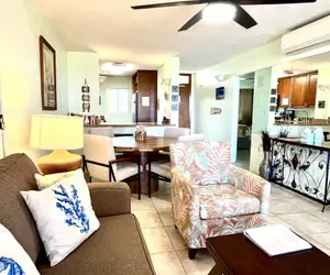 The condo features a fully equipped kitchen with granite countertops, stainless steel appliances, and all the essentials. The living room has comfortable seating, a smart TV, cable, streaming services, and Wi-Fi. Both the master bedroom and living room open to a private lanai with spectacular views. Each bedroom features a king-sized bed, hotel-quality bedding, and a smart TV. A split air-conditioning system and in-unit washer/dryer ensure a comfortable, easy stay.