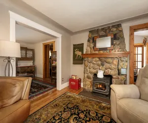 Inside, the cozy living room features a wood-burning fireplace—perfect for warming up after a day of adventure. The fully stocked kitchen makes it easy to prepare home-cooked meals, and coffee lovers will appreciate the espresso machine for a perfect morning brew.