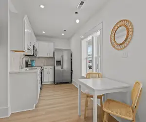 • This charming two-bedroom, one-bathroom cottage in Atlantic Beach is the perfect coastal retreat.