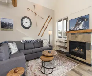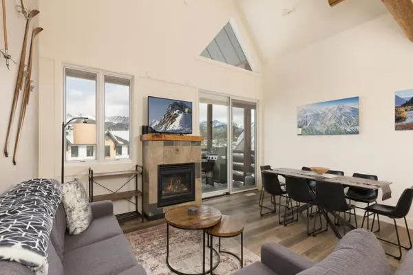 Spanning over three thoughtfully designed levels, this elegant mountain retreat invites you to experience the height of comfort and style. A soaring, sunlit great room with two-story vaulted ceilings anchors the main living space, featuring a stone fireplace, plush seating, a 55" LG OLED Smart TV with Sonos speakers, and panoramic mountain views that shift with the light of day.
