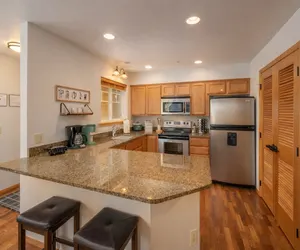 • Adjacent private patio with gear storage for skis, snowshoes, or summer floaties