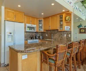 The condo is equipped with split AC for ultimate comfort, a convenient washer and dryer in-unit, and a fully equipped kitchen with an eat-up bar with additional seating making mealtimes a breeze after a day in the sunshine. Enjoy your private lanai with seating for four, perfect for dining al fresco or simply taking in the view.