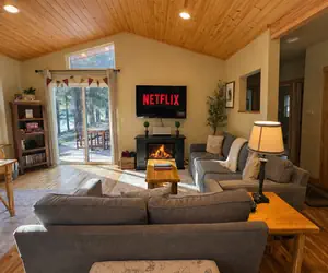Escape to the serene River Song Cabin, a perfect riverside haven where the soothing sounds of the river create a tranquil atmosphere. This charming, pet-friendly cabin offers a cozy fireplace, fully equipped kitchen, and a spacious patio for outdoor living. Enjoy the convenience of free parking, wireless internet, and easy access to a plethora of activities from snowmobiling and hiking to fly fishing and wine tours. Whether you're seeking adventure or relaxation, this cabin promises an unforgettable stay.