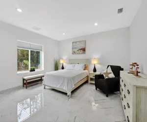 The unit features a full kitchen, spacious living area, private entrance, and three comfortable bedrooms—ideal for families, groups, and extended stays. Large windows bring in great natural light, and the layout offers plenty of room to unwind after a day at the beach.