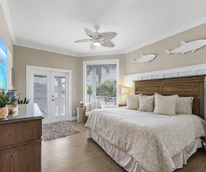 Head up the beautiful staircase—or take the elevator—to the third floor, where each bedroom boasts its own en suite for ultimate privacy. The Primary Suite wows with a canal-view balcony, walk-in closet, and spa-inspired bathroom featuring a claw-foot tub, dual vanities, and a wall-to-wall walk-in shower. Two additional bedrooms offer king beds, private bathrooms (one with a soaker tub and dual vanities, the other with a shower/tub combo), and plenty of storage space.