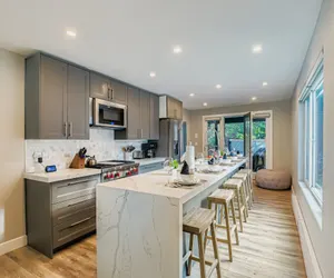 Step outside to the private deck, where you’ll find a freestanding BBQ grill and a private hot tub, perfectly positioned for soaking under the stars or relaxing after a day on the slopes. Whether it's après-ski hot cocoa or summer grilling with mountain views, this outdoor space is designed to make the most of every season.