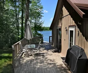 Outside, a spacious deck offers the perfect spot for morning coffee or evening sunsets, and the private shoreline makes it easy to launch a kayak, cast a fishing line, or simply dip your toes in the water. As an optional addition to stays, pontoon rentals are available.