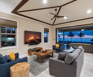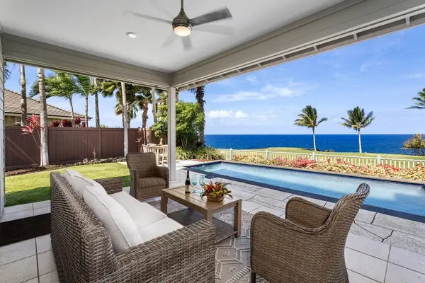 The 3 bed, 2.5 bath, 1,887 sq. ft. home rests along Kona Country Club's ocean course, where waves collide with the rugged coast and coconut palms grace the landscape. Your covered lanai provides outdoor living space beside the pool and hot tub. The gated Holuakai neighborhood also provides a community pool and hot tub.