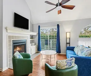 Discover the charm and comfort of 6F Cumberland Terrace, a spacious split-level villa located in the prestigious Property Manager community. This beautifully updated retreat offers ample room for up to eight guests, making it an ideal choice for families or groups seeking a relaxing beach getaway. The main living area features a fully equipped kitchen with quartz countertops and modern appliances, a dining space for six, and a cozy living room with a pullout sofa, smart TV, and decorative fireplace. Step out onto the private balcony to enjoy your morning coffee or evening breeze.