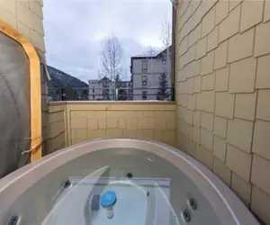 One of the standout features of this townhouse is the private hot tub on the balcony, where you can unwind after a long day. Imagine soaking in the warm waters while enjoying breathtaking views or hosting intimate gatherings with friends. The private deck adjacent to the living area is perfect for sipping morning coffee or enjoying the fresh mountain air.