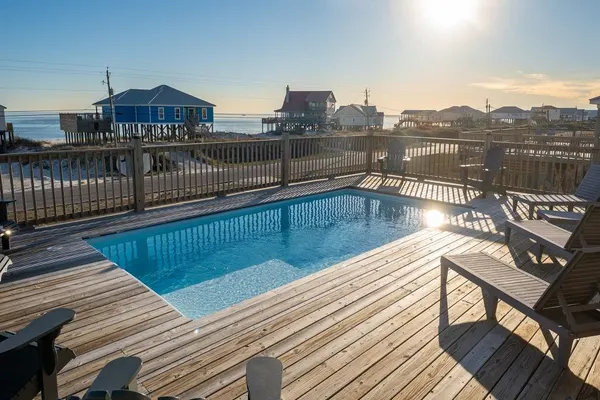 Welcome to Vitamin Sea, your family and dog-friendly Dauphin Island retreat. This stilted 4-bedroom, 3-bathroom home sits just a short walk (less than 5 minutes) from the Gulf-side beach. With an elevated private pool offering Gulf views, expansive decks, and a swing for sunset watching, Vitamin Sea is designed for relaxation and coastal living.