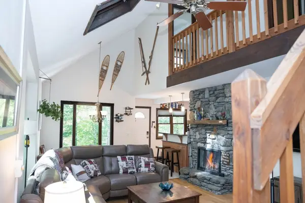 Welcome to Blue Haven. Tucked among the trees on a quiet 1.21-acre lot, this beautifully renovated three-bedroom, three-bathroom home offers the perfect blend of comfort, privacy, and easy access to the mountain. Just five minutes from Killington Resort, Blue Haven is close to everything but feels worlds away. The open-concept living room is filled with natural light from tall windows and anchored by a beautiful stone fireplace that runs on propane, perfect for warming up and sharing stories after a day on the slopes or trails. The kitchen features marble floors and granite countertops, making it easy to cook, gather, and connect with family and friends. Upstairs, two bedrooms offer luxurious king beds, while the third includes a queen and two twin beds, ideal for families or groups. On the ground floor, a freshly finished family room provides a cozy second living space with a large flat-screen TV and heated floors to keep you warm and comfortable. Outside, relax in the year-round hot tub and take in the peaceful sounds of the surrounding pines, your perfect basecamp for Killington adventures.