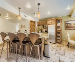 The fully equipped kitchen is designed for convenience, with modern appliances, ample counter space, and all the essentials you need to prepare home-cooked meals. Adjacent to the kitchen, the dining area seats four comfortably, offering a cozy place to enjoy meals together. Whether you’re serving a hearty breakfast before hitting the trails or gathering for a relaxed dinner, this space is perfectly suited for both casual and special moments.