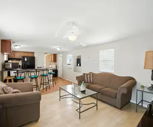 Tucked into a quiet Las Cruces neighborhood, this charming 2-bedroom, 1-bath mobile home offers comfort, convenience, and Southwestern charm. Ideal for couples, solo travelers, or small groups, it’s just a stroll or short drive from top local destinations like NMSU, the convention center, parks, eateries, hospitals fitness centers and shopping.What Makes It SpecialBright, inviting layout with a cozy living area and a functional kitchen.Comfortably sleeps up to 9 guests:Bedroom 1: Queen bedBedroom 2: 2 queen bedThoughtfully appointed essentials: washer, dryer, air conditioning, cooler and a barbecue grill—all ready for your stayWorkspace availability—perfect for guests who need to work while awayLocation Perks & Nearby HighlightsA 17-minute walk brings you to New Mexico State University and the Las Cruces Convention CenterJust minutes away: Memorial Medical Center, Mesilla Valley Mall, and the Farm & Ranch Heritage MuseumGrab a meal nearby—Sonic, Wingstop, McDonald’s, Taco Bell, Dion’s are all within a short walkGreat for active travelers—two spacious parks with a 2 tennis courts across the street are perfect for jogging or a morning strollPerfect For:Leisure travelers excited to explore NMSU, local parks, or museum trailsBusiness or academic guests needing proximity to NMSU or the convention center with a quiet workspaceFamilies seeking clean, secure accommodationsNote: There's a $80 pet fee plus tax and processing fees per pet, per stay (Training pets with small and medium sizes).