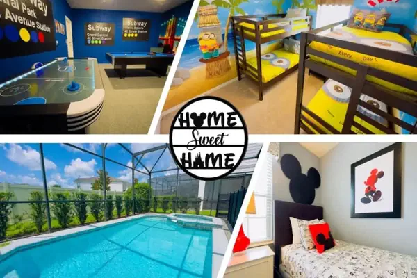 • This beautifully decorated and fully-equipped property features an incredible private pool, modern open layout, themed bedrooms, and an epic game room.