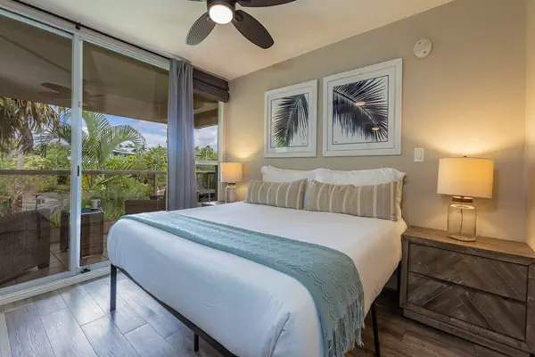 • Both bedrooms are generously sized and feature their own private lanais with stunning views of Haleakalā, Maui’s majestic dormant volcano. Wake up to the sunrise over the mountains and unwind in the evening while the trade winds rustle through the palm trees.