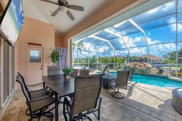 - Large screened-in Lanai with outdoor seating and dining overlooking the canal