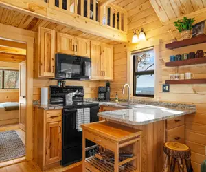Whether you're lounging in the loft, sharing a meal in the open living area, or soaking in the view from outside, this tiny home offers a memorable blend of seclusion, serenity, and style.