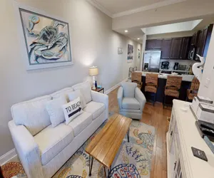 Nestled in the heart of Miramar Beach, Alerio 103E is the perfect place for families or friends seeking a luxurious yet comfortable stay. This two-bedroom, two-bathroom condo offers a cozy, elegant escape, complete with modern amenities. As you step inside, you're greeted by an open-concept living area, where a plush sofa transforms into queen sofa sleeper to provide extra sleeping space for your guests. The living room is thoughtfully designed with cable TV, making it easy to relax. The fully equipped kitchen is spacious and filled with everything you might need to prepare meals. The master bedroom features a plush king bed and a private en-suite bathroom, while the second bedroom offers a cozy queen bed.