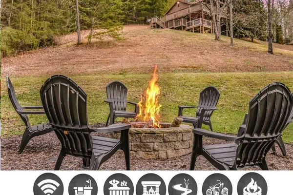 Outside is where this cabin truly shines. Take in the peaceful surroundings from the full wrap-around deck, complete with plenty of seating and covered spaces. Watch deer and squirrels wander by while sipping your morning coffee. For ultimate relaxation, head down to the private lower deck hot tub, perfectly tucked away for quiet evening soaks under the stars.The gently rolling yard leads down to a charming creek—perfect for kids to explore, splash around, or simply enjoy the soothing sound of flowing water. And when the sun starts to set, gather around the wood-burning firepit for unforgettable evenings. Roast marshmallows, share stories, or fire up the nearby charcoal grill for a true Smoky Mountain experience. Yard Games are available.