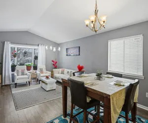 Welcome to your bright and spacious Lansing getaway—perfect for families, traveling professionals, and long-stay guests seeking comfort and convenience. This 4 bedroom, 2 bath home features vaulted ceilings, large sun-filled living areas, and multiple spaces to relax or work. With recent upgrades throughout, you’ll enjoy a refreshed kitchen with newer cabinets, countertops, backsplash, and LED mood lighting, plus updated bathrooms and high-quality flooring.