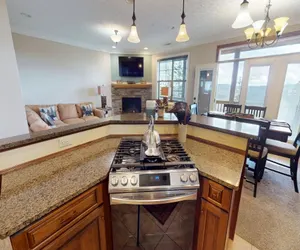 Black Bear Crossing #26 is a lovely 6 bedroom and 5.5 bath nestled right on Snowshoe Mountain Resort's Powderidge Lift and ski slope, allowing you to strap on your skis or boards and hit the slopes from right outside your patio door. Guests staying in this home will enjoy approximately 3,800 square feet of living space spread out through 4 levels. Stainless steel appliances adorn the 2 full kitchens, with a wet bar on the bottom level for serving up some drinks. After a long cold day on the slopes, warm up and relax in the hot tub on a private balcony overlooking the breathtaking mountains of Appalachia. If the hot tub isn't your thing, head down to the basement level and pick out a fun family board game, or challenge another in a riveting game of foosball. No matter how you choose to relax during your mountain getaway, this spacious townhouse is the choice for you!