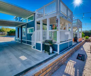Set in the heart of Roadrunner Resort, 'Guitars and Tiki Bars' delivers the perfect mix of laid-back vibes, riverfront beauty, and fun-filled adventure. This spacious 2-bedroom, 2-bathroom bungalow accommodates up to 6 guests, featuring two queen-size beds and a cozy pull-out sofa bed—ideal for families and friends looking to escape to a tropical-inspired retreat with a musical twist.