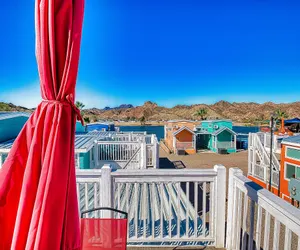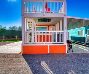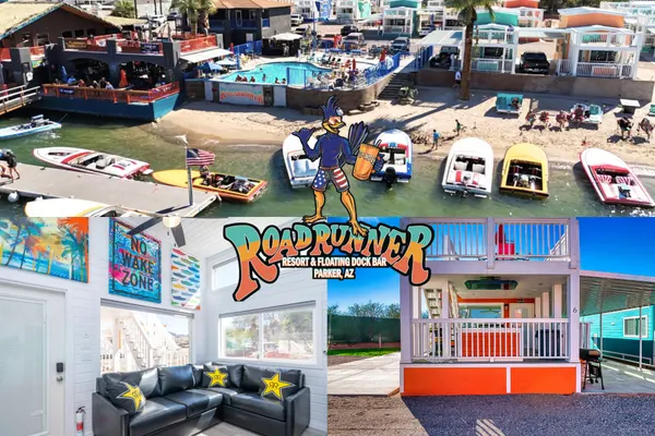 Set in a prime location with deluxe river views, 'Rockstar Inn' at Roadrunner Resort offers a high-end retreat where luxury meets fun. This stylish 2-bedroom, 2-bathroom bungalow comfortably accommodates up to 6 guests, featuring two queen-size beds and a cozy pull-out sofa bed—perfect for families and groups looking to live like a rockstar.