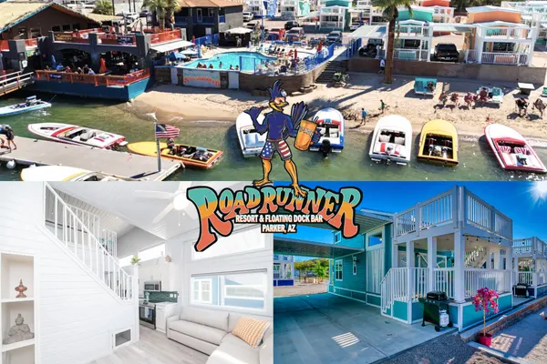 Located in the heart of the Barefoot Beach Club at Roadrunner Resort in Parker, AZ, '5 O'Clock Somewhere' offers the ultimate blend of comfort, style, and relaxation. This spacious 2-bedroom, 2-bathroom bungalow accommodates up to 6 guests, featuring two queen-size beds and two cozy pull-out sofa beds—perfect for families and friends seeking a laid-back yet luxurious retreat.