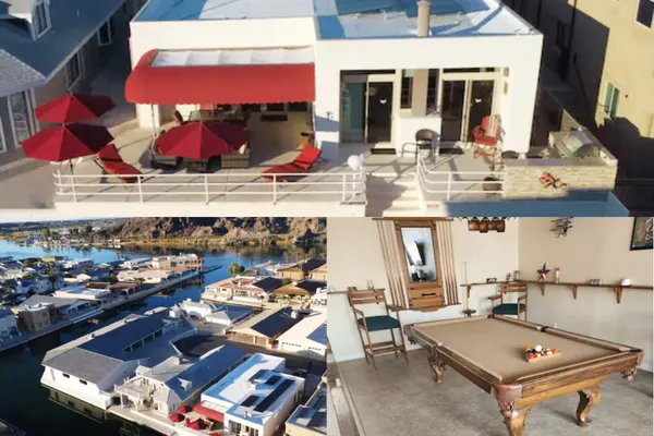 Kastle on the Keys - Prepare for a desert getaway at this Parker vacation rental paradise, featuring three bedrooms and two bathrooms. This Moovalya Keys home is located directly on the canal. Relax on the large, covered patio, which has a dock and a personal watercraft dock and has very convenient access to the Colorado River! Come home after a day on the lake to prepare dinner in the fully equipped kitchen or outside on the Viking Grill. Relax on the big couch and enjoy the pool table.