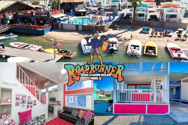 Get ready to sip, soak, and savor life at The Boozy Bungalow, your perfect home base for riverfront fun and relaxation at the iconic Roadrunner Resort. This vibrant 2-bedroom, 2-bathroom retreat sleeps up to 8 guests with two comfy queen beds and two pull-out sofa beds—ideal for couples, friends, and families ready to raise a glass to good times.