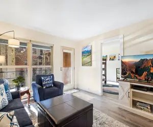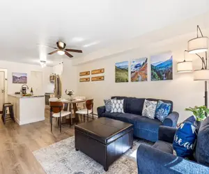 Welcome to your alpine escape at Fall Line 107 in downtown Telluride! This fully renovated (2025), single-level condo offers 715 sq. ft. of thoughtfully designed living space, just blocks from the slopes, gondola, and Main Street. Enjoy stunning mountain views from your private deck, an open-concept living area filled with natural light, and a fully equipped modern kitchen—perfect for preparing family meals or entertaining friends. This 2-bedroom, 1-bath retreat comfortably accommodates up to six guests, making it ideal for families or small groups seeking both comfort and style. After a day of adventure, unwind with nearby parks, dining, and shops all within walking distance.