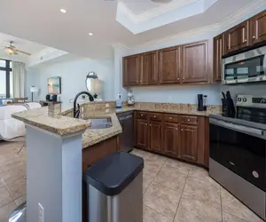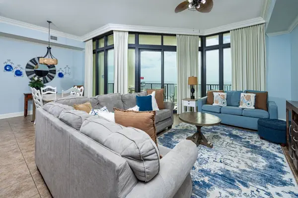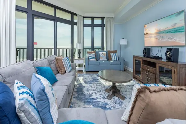 The Oasis 405 is a spacious three-bedroom, four-bath condo that comfortably sleeps up to 10 guests, making it ideal for families and groups.