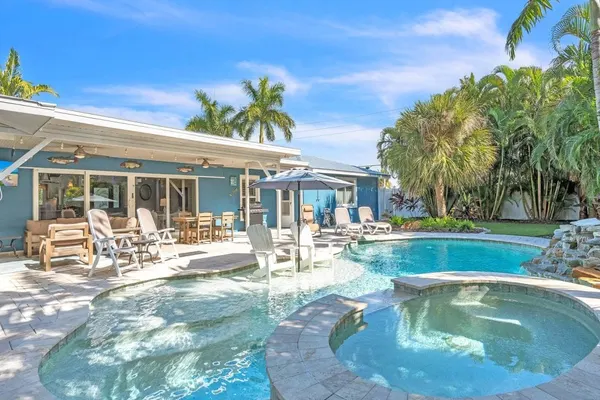 Welcome to Palms by the Bay! This beautiful home features three bedrooms plus bonus room and three bathrooms and is located just a short walk away from the stunning Gulf beaches. Spend your days soaking up the sunshine on the sugary white sand and then retreat back to the backyard oasis for a refreshing dip in the sparkling pool or a relaxing soak in the in-ground spa. You'll leave feeling rejuvenated and refreshed after your stay at this tropical paradise.As soon as you step inside, you'll be welcomed by a warm and inviting living space offering plenty of room and beautiful backyard views. Take a seat in one of the comfortable side chairs or sofas and enjoy the company of loved ones as you watch your favorite movies on the TV. The dining area is the perfect place to gather for meals, and the kitchen is a chef's dream, with stunning granite countertops, custom cabinets, top-of-the-line stainless-steel appliances, and a spacious island with plenty of seating.There are two workspaces which makes work or studying away from home a pleasure. Also enjoy blazing-fast 1-Gig Wi-Fi throughout the home, perfect for streaming, remote work and multiple devices.Each of the three stunning bedrooms plus bonus room are equally appointed with plush bedding, televisions, and dressers, ensuring a peaceful and restful night's sleep. You'll find 3 bedrooms plus a bonus room to accommodate up to 6 guests in total. There are two king suites with walk-in showers, one guest room with two twin beds and a bedroom with a queen bed. The hall bathroom hosts a lovely shower and tub combination, and for your added convenience, a washer and dryer are provided, making your stay as seamless and stress-free as possible.HIGHLIGHTS • 1841 sq. ft. • Private pool (28x12 ft.)• Spa• Pet friendly• 100 steps from the canal for fishing • 0.3 miles from beach access• 1 gig Wi-Fi for seamless and fast connectivity BEDROOMS• Sleeps 6• Primary Bedroom: King Ensuite• Second Bedroom: Queen• Third Bedroom: Twins• Bonus room: King EnsuiteBATHROOMS• Primary Bathroom: Walk-in Shower• Second Bathroom: Shower/Tub • Third Bathroom (ensuite): Walk-in ShowerWith a plethora of activities and amenities, there's something for everyone. Imagine basking in the glorious sunshine while lounging by the pool or on the sun shelf. You can also showcase your culinary skills by grilling up a delicious meal, catching up on your favorite sports game on the outdoor TV, or taking a stroll to the Gulf beach nearby. At Palms by the Bay, you can have everything you need for a perfect vacation!This property participates in our Professional Linen Program. In Property Manager's continuous effort to bring only the best quality experience to our guests, we are proud to offer a professional linen service at this property to better enhance your enjoyment while staying here. This luxury amenity provides you with high-quality linens; including bedding, bath towels, washcloths, hand towels, bathmats, kitchen towels and beach towels that are in place and ready for your use upon your arrival. These high-quality linens are washed in a commercial setting using the latest and best technology.Minimum stay: 7 nights and Maximum occupancy: 6 people3 cars maximum are able to park at this home. Palms by the Bay is a pet friendly property for dogs up to 50 lbs. The non-refundable pet fee is $150.00 per pet and will be charged for each week. Short stays are not prorated. The pet fee does not cover any damage caused by the pet.The pool heat is $150.00 a week. Pool heaters in private homes are locked for your safety and controls must not be tampered with as they are monitored by the pool company. 86° F is the highest heat temperature setting which might not be always reached. Please note if cold days and nights occur, water temperatures will drop and may stay cooler longer. Pool heaters will not operate and will automatically shut down if outside temperatures get too cold. While we take every precaution to ensure that pools are heated as specified, weather conditions may affect the temperature of the pool. Nothing can be done about this issue. Outdoor spas are not hot tubs and require heat at the additional cost. The temperature of a spa is typically set at the same temperature as the pool. In the event of pool equipment malfunction during your stay, Property Manager will expedite repairs as quickly as possible. It may be necessary to close swimming pools for maintenance purposes. No refund or rent adjustment will be made for circumstances beyond our control, malfunctions, or loss of use of equipment or amenities. Please Remember: "You are vacationing in a residential area. Please be a good neighbor by keeping the noise to a respectful level during the day and night. Excessive and unreasonable noise can deprive neighbors of the peaceful enjoyment of their private property." VRC16-000361