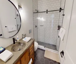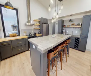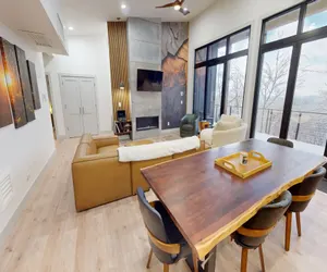 Welcome to this NEW, beautifully constructed six-bedroom retreat, thoughtfully designed to blend modern comfort with distinct, stylish character on each level. The home features six spacious bedrooms, each furnished with a luxurious king bed, offering exceptional comfort and consistency for families, groups, or extended stays. The layout is perfectly balanced, with three bedrooms and two full bathrooms upstairs and three bedrooms with two full bathrooms downstairs—providing privacy and convenience across both levels. All four bathrooms are fully renovated and feature clean lines, modern finishes, spa-like details, and heated floors for added comfort. Throughout the home, sleek European-style doors and windows enhance the contemporary aesthetic while adding a refined architectural touch. Every living space and bedroom is equipped with a flat-screen TV, and each bedroom includes electronic charging stations to ensure ease and convenience for all guests. Designed for flexibility and ease, the home offers two fully equipped kitchens, making it ideal for multi-family stays or extended visits. Enjoy cozy evenings by two gas fireplaces and unwind after a day of activities in two private hot tubs. The downstairs level features a mint-sage, boho-inspired palette, creating a light, airy, and relaxed atmosphere with soft tones and inviting textures—perfect for gathering and unwinding. Upstairs, the mood shifts to a rustic and cozy ambiance, accented with deeper navy tones and warm finishes that add depth and character while maintaining a polished, modern feel. Additional amenities include: • Two fully stocked laundry rooms (one upstairs and one downstairs) with new washers and dryers • Shuttle access • Espresso machine • Electric vehicle charging station • Commercial-grade boot and glove dryer This home effortlessly combines style and functionality, offering distinct yet complementary design experiences on each floor—ideal for guests seeking space, comfort, and a truly memorable stay.