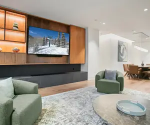 Guests enjoy access to premium amenities including a fitness center, hot tub, pool, game room with golf simulator, and an on-site ski lounge and café. With complimentary WiFi, daily housekeeping, transportation services, and concierge support, this home offers a luxurious and convenient base for every Deer Valley adventure.