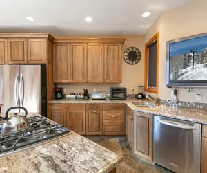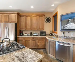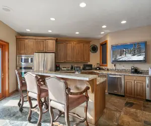 This expansive four-story townhome blends mountain charm with modern comfort, creating a refined retreat in the heart of Lower Deer Valley. The residence features a gourmet kitchen outfitted with high-end appliances, custom wood cabinetry, and granite countertops—ideal for both casual meals and elegant entertaining.