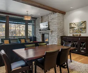 This beautifully appointed 2-bedroom, 3-bathroom residence offers true ski-in/ski-out access in the exclusive Empire Pass area of Deer Valley. Enjoy panoramic mountain views through floor-to-ceiling windows, unwind by the stone fireplace, or gather around the spacious dining area after a day on the slopes. The chef’s kitchen features high-end appliances, custom wood cabinetry, and a granite island—perfect for après-ski meals.