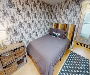 Welcome to Mountain Crest 11, a thoughtfully designed modern studio condo located within the ski resort—perfect for a relaxing mountain getaway.This open-concept studio features a comfortable queen bed and a sleeper sofa, offering flexible sleeping arrangements for couples or small groups. Clean lines, contemporary finishes, and a warm, neutral palette create a refined yet cozy atmosphere. The living space is centered around a wood-burning fireplace, ideal for unwinding after a day on the slopes.The condo includes one full bathroom with a walk-in shower, blending modern style with everyday convenience. Step outside onto the private deck and enjoy peaceful wooded views, an inviting spot for morning coffee or evening relaxation.With its modern design, efficient layout, and prime ski-resort setting, Mountain Crest 11 offers a comfortable and stylish retreat for every season.