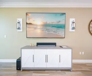 Step out onto the balcony, furnished with comfortable Polywood-style table and chairs, and enjoy dining outdoors after a relaxing day floating along the lazy river. Flat-screen TVs are located throughout the condo for your entertainment.