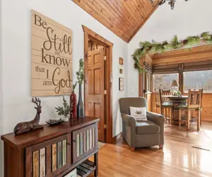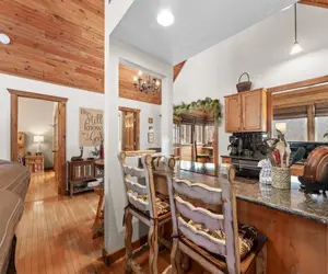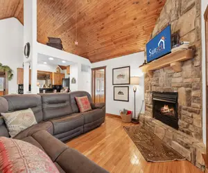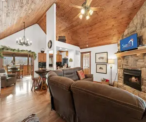 The cabin features two comfortable bedrooms, a fully equipped kitchen, and a warm, open living area ideal for relaxing after a day of adventure. Enjoy your morning coffee or evening unwind on the enclosed private deck, taking in peaceful wooded views. As our guest, you'll enjoy access to Stonebridge Resort amenities, including outdoor pools, golf, scenic walking trails, and more — all just minutes from Branson's shows, shopping, and dining. Best of all, this cabin is just minutes from Silver Dollar City!