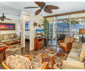 Welcome to Menehune Shores #308, a thoughtfully designed two-bedroom, two-bathroom oceanfront condo showcasing sweeping ocean views and a large private lanai. This inviting retreat blends modern comfort with classic Maui appeal, creating an ideal setting to unwind and enjoy the island’s natural beauty.