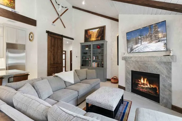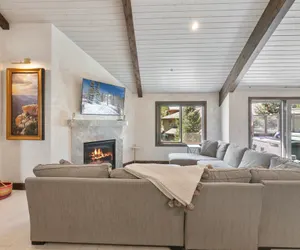 This four-bedroom, four-bathroom residence blends rustic charm with modern luxury. Vaulted ceilings with exposed wood beams enhance the open feel, while large windows flood the home with natural light and frame beautiful lake and mountain views. A fireplace adds a cozy centerpiece to the living area, and the flowing layout makes this home ideal for entertaining or relaxing after a day on the mountain.