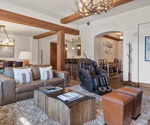 This expansive single-floor residence offers the perfect blend of luxury and comfort. With three bedrooms, a den and four bathrooms, it’s ideal for families or groups seeking a spacious mountain retreat. The open-concept layout connects the living and dining areas, while large windows frame sweeping views of the Silver Strike lift—underscoring the convenience of true ski-in/ski-out access right from your doorstep.