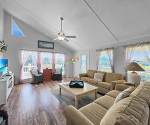 You have found the pot of gold at the end of the rainbow! This home has a primary bedroom with a king bed and an attached bathroom. The 2 guest bedrooms each have a queen bed. In the hallway, there is a guest bathroom with a shower. You will find a queen sleeper sofa in the living room to accommodate 2 extra guests. The kitchen has all the amenities needed to make meal time a breeze. The large dining table is perfect for gathering for meals, playing games, or putting together puzzles! You will find plenty of seating in the living room. This home has internet access to stream your favorite shows, movies, or stay connected with family and friends. The login and password information are located near the TV. Picture yourself sitting on the deck in a comfy chair with your favorite beverage, watching a glorious sunrise! You can feel the coastal breezes on your skin as gulls fly overhead, and you see the waves gently rolling. Downstairs, you will find lots of room to gather with family in the shaded covered area while the kids play in the fenced-in yard. There is a charcoal grill for the "grill master" to cook a scrumptious meal for the family. This home is pet-friendly with a $200 pet fee charged separately from the rent charges. When the sand and waves call out, you are a short golf cart ride or walk from the beach. There is no vehicle access to the beach in this neighborhood, but on South Cove, just a short drive to the east, you will have direct access to the beach. After a fun day in the sun, rinse away all the sand in the outdoor shower. There is nothing "Crabby" about this place, only lots of fun memories with family and friends!